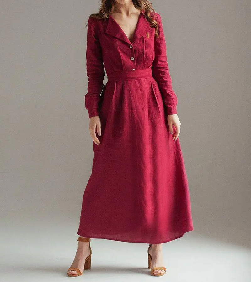 Linen Lapel Collar Wrap Dress
